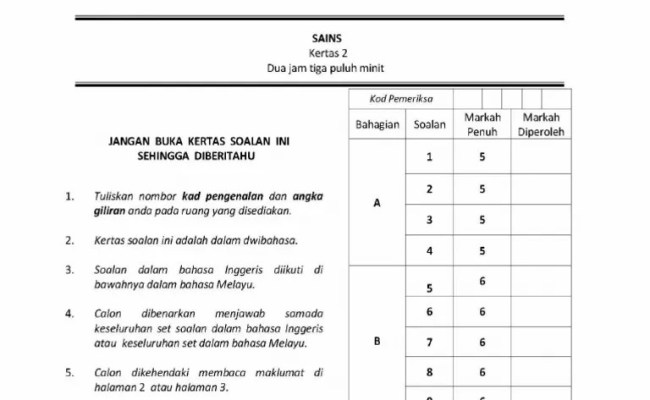 Contoh Soalan Sains Spm Kertas 1